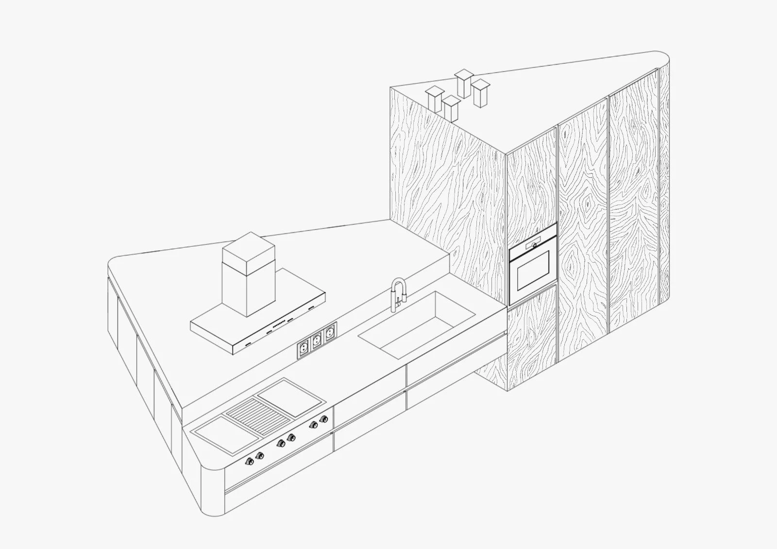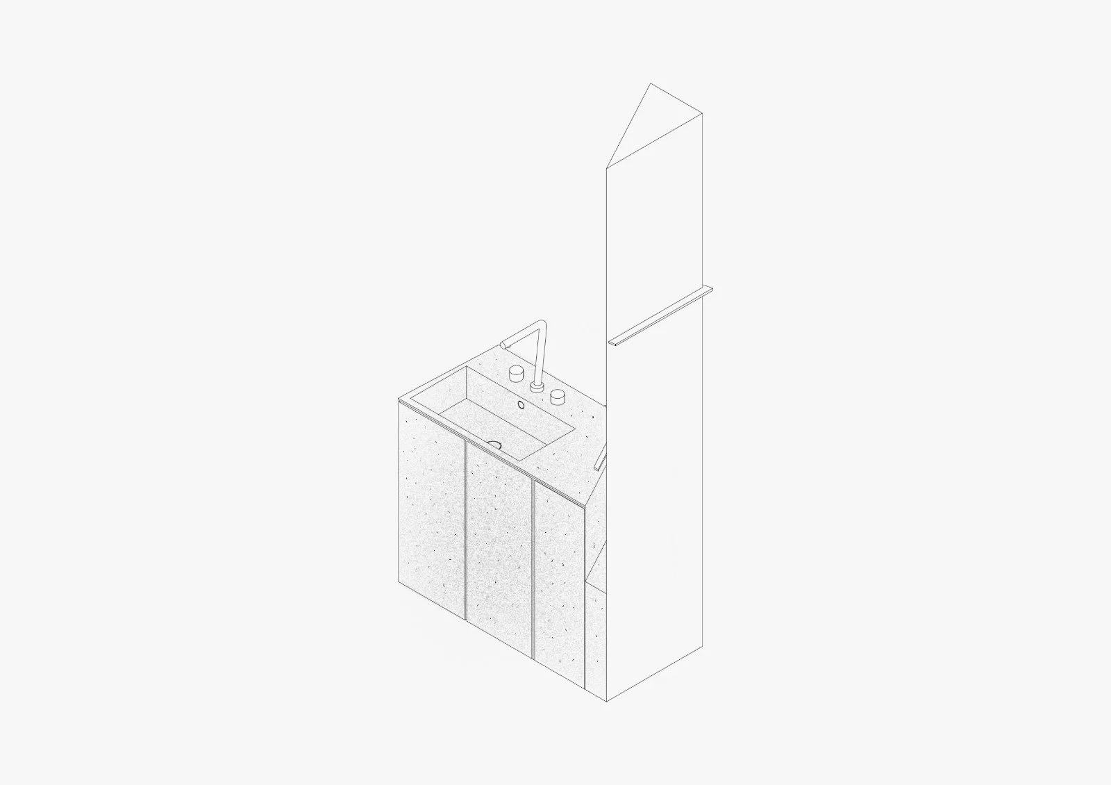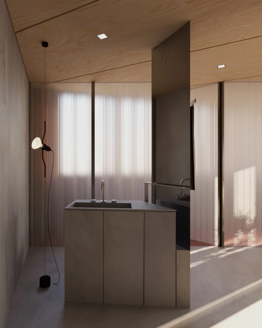 In alignment with Coderch’s architectural principles, the design highlights the building’s uneven shapes, making them important parts of the space.