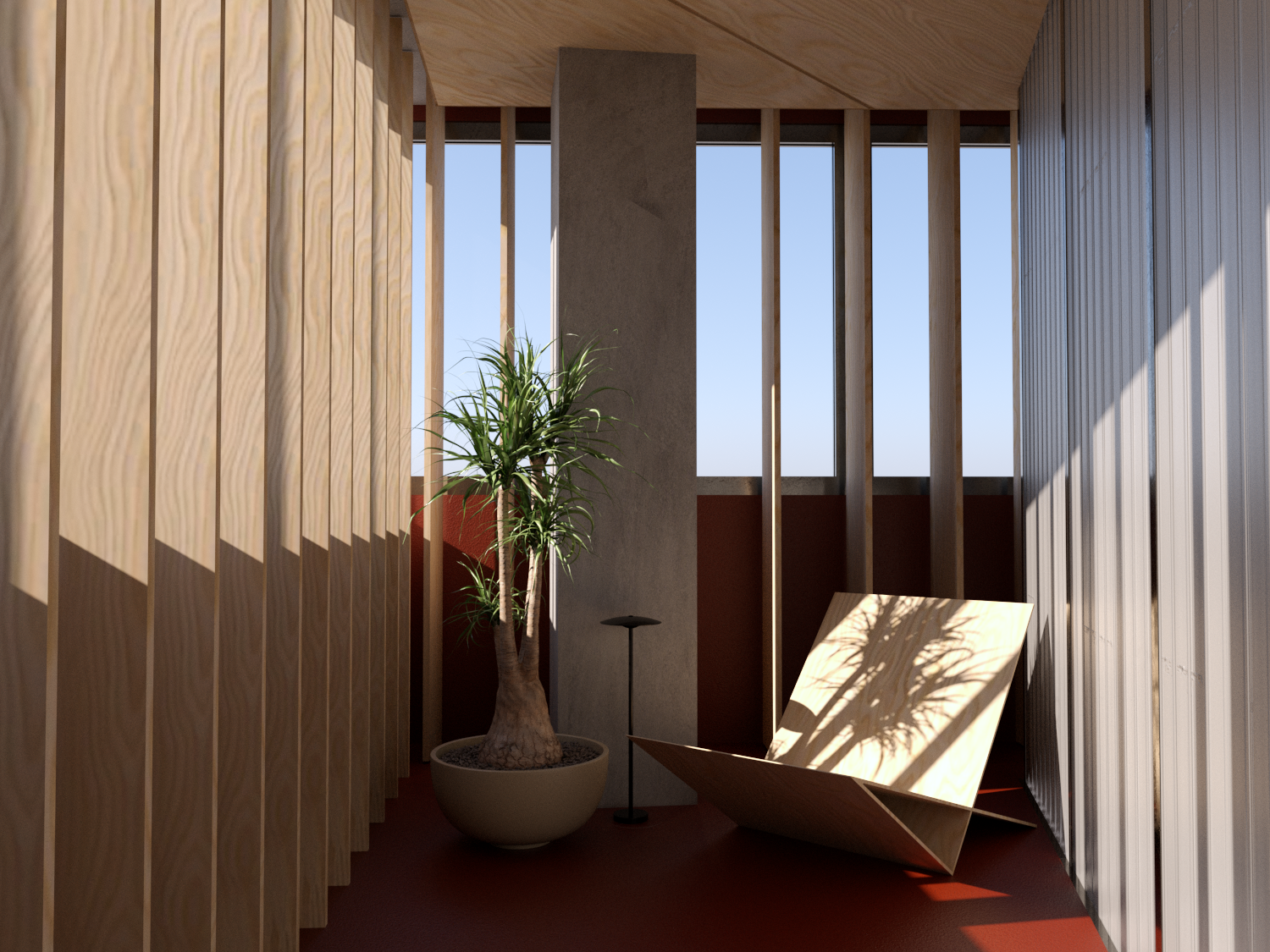 Conceptual design for the interior architecture and spatial reconfiguration of a floor in Edificio Colón, Barcelona. The project is inspired by Trencadís, a technique that involves assembling irregular pieces.